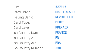 卡头527346的虚拟信用卡是revolut的万事达卡,卡的种类是DEBIT,卡的级别是PREPAID。