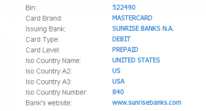 - 发卡公司/发卡行:SUNRISE BANKS N.A.