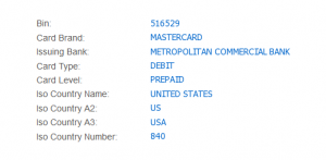 - 发卡公司/发卡行:METROPOLTAN COMMERCIAL BANK