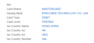 - 发卡公司/发卡行:EPAYLINKS TECHNOLOGY CO.LIMI