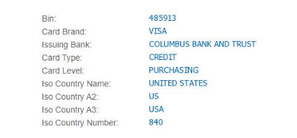 卡头485913虚拟卡是哥伦布银行与信托公司发行的一张虚拟信用卡,卡的种类是CREDIT,卡的级别是PURCHASING(信用卡类型,企业采购卡等级)归属地为美国,可无限开卡。