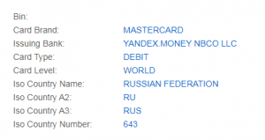 - 发卡公司/发卡行:YANDEX.MONEY NBCO LLC