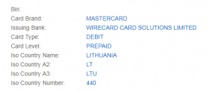 - 发卡公司/发卡行:WIRECARD CARD SOLUTIONS LIMITED